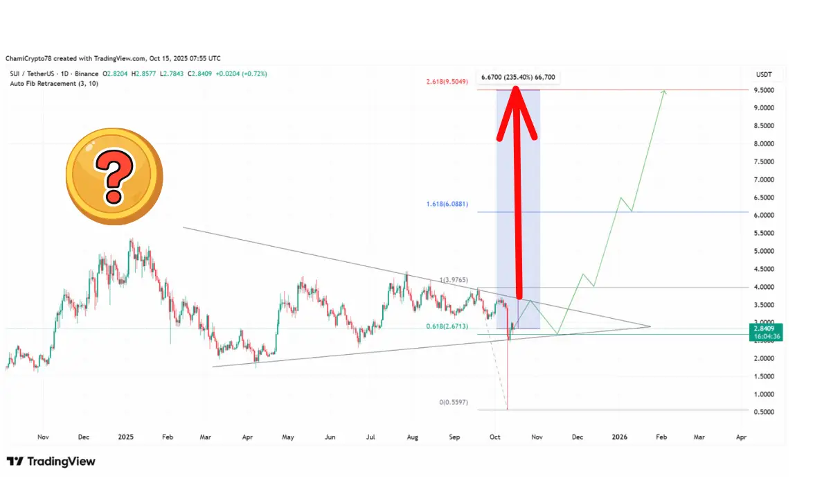 قیمت سویی که در حال حاضر در محدودهٔ ۲.۸ دلار معامله میشود، درون یک الگوی کلاسیک «مثلث متقارن» (Symmetrical Triangle) در حال فشرده شدن است. این الگو که نشاندهندهٔ یک دورهٔ تعادل میان خریداران و فروشندگان است، معمولاً به یک شکست (Breakout) انفجاری ختم میشود.