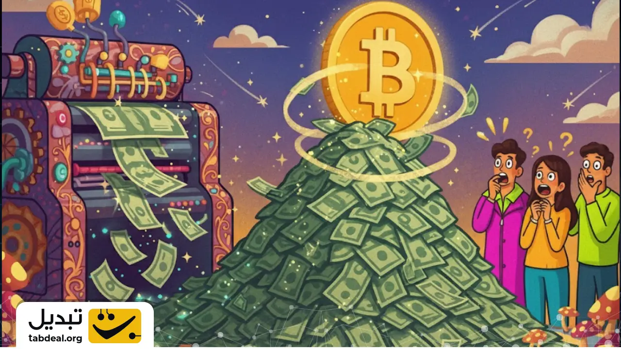 زیرا افزایش حجم پول در گردش، به کاهش ارزش و قدرت خرید هر واحد از آن پول (تورم) منجر میشود. این امر سرمایهگذاران را تشویق میکند تا برای حفظ ثروت خود، به داراییهای کمیاب و مقاوم در برابر تورم مانند بیت کوین روی بیاورند.