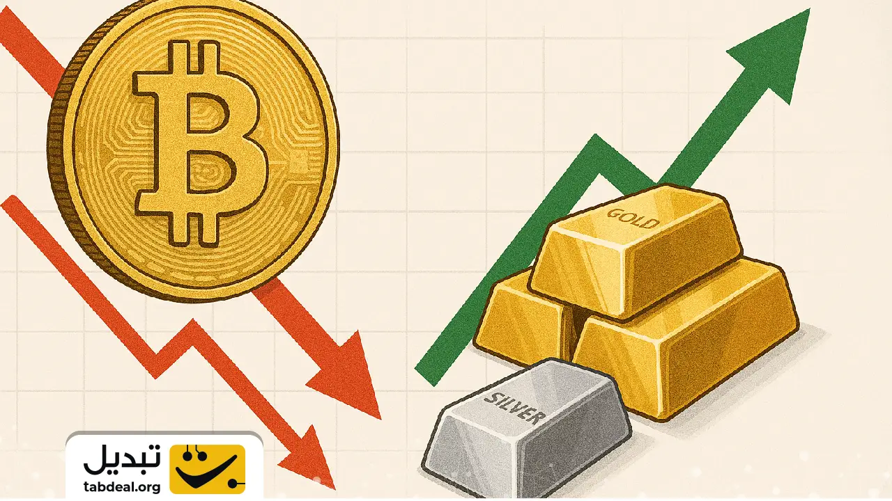 اکنون، پنج سال بعد، تصویر آشنا دوباره در حال شکلگیری است. طلا به رکورد تاریخی جدیدی در حوالی ۴۵۵۰ دلار رسیده است و نقره نیز پس از یک سهماهه پایانی طوفانی، به اوج تازهای نزدیک ۸۴ دلار دست یافته است. در مقابل، بیت کوین همچنان زیر ۹۰ هزار دلار درجا میزند و تلاش میکند اثرات رویداد لیکوییدیشن گسترده ۱۰ اکتبر را پشت سر بگذارد؛ رویدادی که بیش از ۱۹ میلیارد دلار موقعیت اهرمی را از بازار حذف کرد.