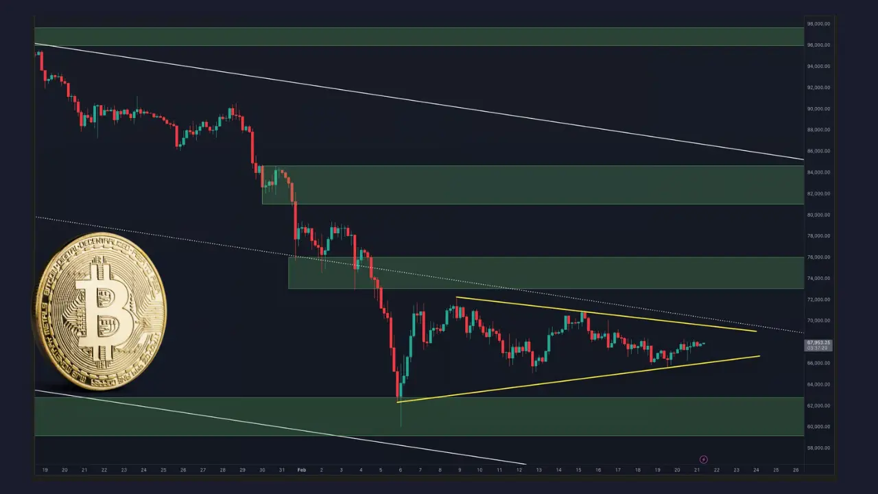 منطقه ۷۵ هزار تا ۸۰ هزار دلار اکنون به عنوان یک منطقه عرضه مهم شناخته میشود که با ساختار شکست قبلی همسو است و در صورت بهبود بازار، اولین مانع بزرگ بر سر راه قیمت خواهد بود. تا زمانی که بیتکوین زیر مقاومت میانی کانال و میانگینهای متحرک محدود بماند، هرگونه بازگشت قیمتی صرفا یک حرکت اصلاحی در نظر گرفته میشود. حفظ پایدار سطح ۶۰ هزار دلار بسیار حیاتی است؛ در غیر این صورت، فشار فروش مجدد میتواند قیمت را به سطوح عمیقتری در داخل کانال سوق دهد.