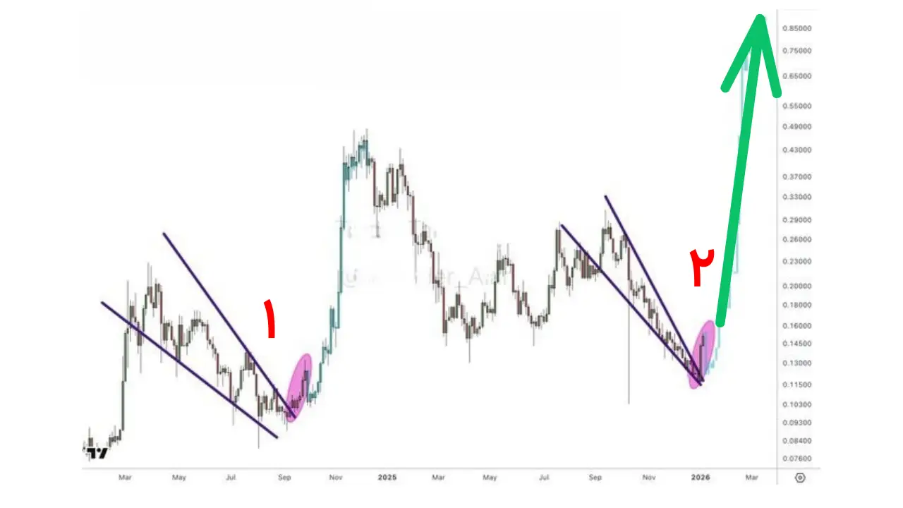 - هدف قیمتی در صورت حفظ مومنتوم، عبور از سطح ۰.۲۰ دلار در آینده نزدیک است.