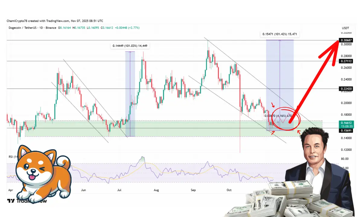اما این تمام ماجرا نیست. همزمان با این خبر داغ، ساختار تکنیکال قیمت دوج کوین به طرز شگفتانگیزی شبیه به الگوی رالی ۱۰۱ درصدی ماههای ژوئن-ژوئیه شده است. به نظر میرسد تاریخ در حال تکرار است و ترکیب موفقیت شرکتی ایلان ماسک با قدرت تکنیکال دوج کوین، میتواند صحنه را برای یک صعود بزرگ دیگر تا پایان سال آماده کند.