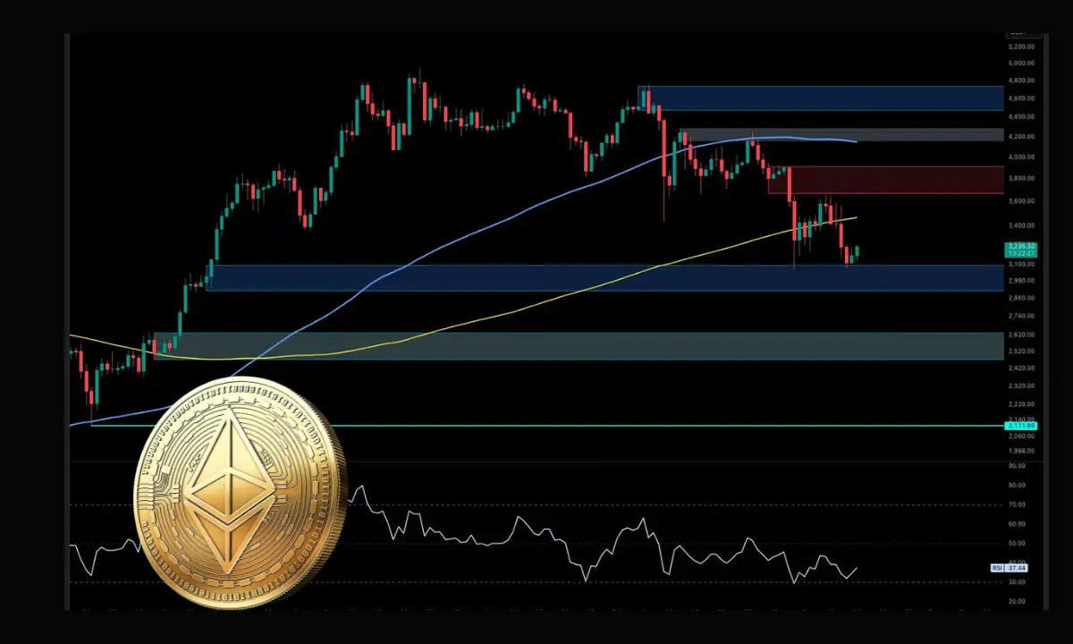 حمایت بحرانی 🛡️ $۳,۰۰۰ – $۳,۱۰۰ ناحیهٔ تقاضای تاریخی؛ حمایت اصلی فعلی.