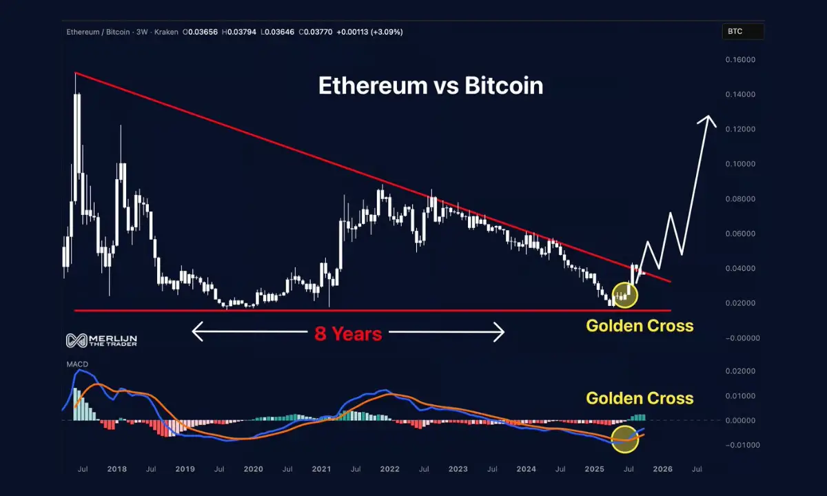 | مرلین د تریدر | بسیار صعودی (بلندمدت) 📈 | شکست روند نزولی ۸ ساله در نمودار ETH/BTC | (معادل دلاری بسیار بالا) |