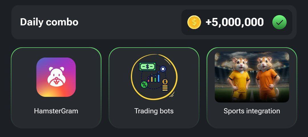 با وارد کردن ترکیب کمبو کارت های بالا در بازی تلگرامی همستر کامبت ۵،۰۰۰،۰۰۰ سکه جایزه بگیرید. هر روز کمبو کارت‌ها را در آکادمی تبدیل دنبال کنید.