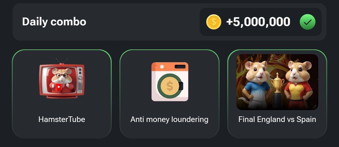 با وارد کردن ترکیب کمبو کارت های بالا در بازی تلگرامی همستر کامبت ۵،۰۰۰،۰۰۰ سکه جایزه بگیرید. هر روز کمبو کارتها را در آکادمی تبدیل دنبال کنید.