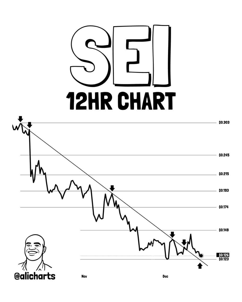 بر اساس دادههای منتشرشده در یک پست تحلیلی از علی مارتینز (Ali Charts)، رمزارز SEI موفق شده است در نمودار ۱۲ ساعته، خط روند نزولی بلندمدت خود را به سمت بالا بشکند؛ اتفاقی که از منظر تحلیل تکنیکال، میتواند نشانهای مهم از تضعیف فشار فروش و آغاز یک فاز اصلاحی یا بازیابی قیمت باشد.