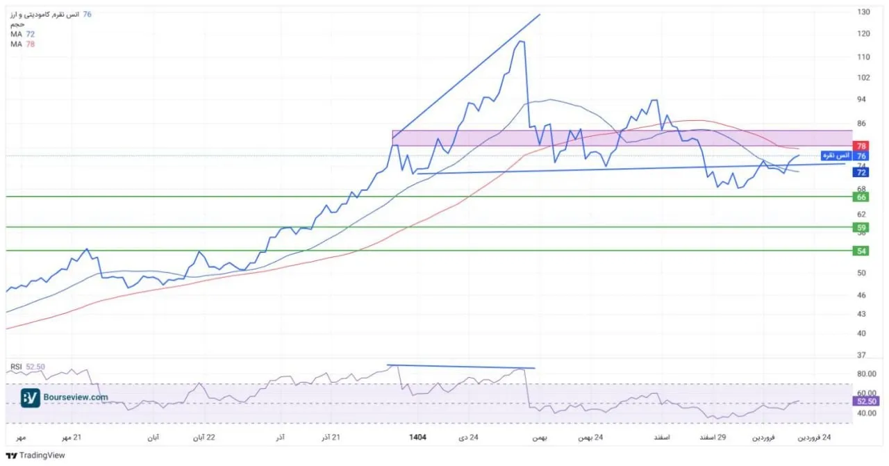 اگر قدرت خریداران در بازار ادامه داشته باشد و نقره بتواند میانگین متحرک ۵۰ روزه را نیز پشت سر بگذارد، مسیر برای پرواز قیمتها هموار خواهد شد.