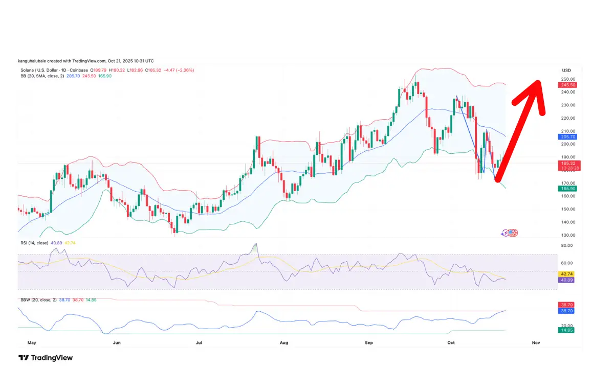 قیمت سولانا (SOL) پس از یک اصلاح قیمتی، یک الگوی کلاسیک و قدرتمند «کف دوقلو» (Double Bottom) را در زیر سطح ۱۸۰ دلار تشکیل داده است. این ساختار صعودی که توسط تحلیلگر افسانهای، جان بولینگر، نیز تأیید شده، این احتمال را تقویت میکند که سولانا برای یک بازگشت قدرتمند و یک رالی ۴۰ درصدی به سمت ۲۵۰ دلار آماده میشود.