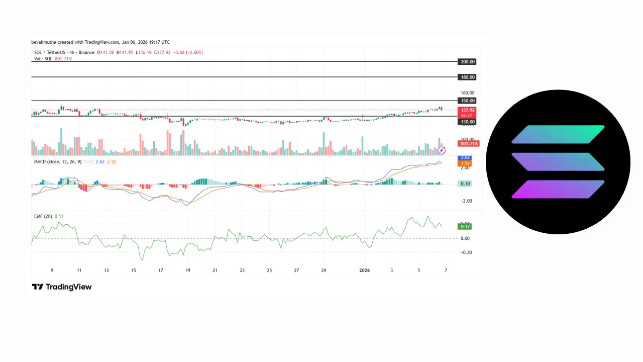 قیمت سولانا در نمودار ۴ ساعته در محدوده ۱۳۷ دلار نوسان میکند و شاخصهای تکنیکال سیگنالهای مثبتی صادر کردهاند:
