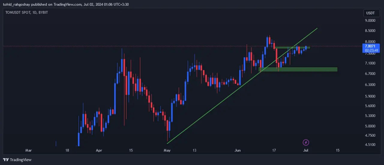 با تحلیل تکنیکال تون کوین امروز ۱۲ تیر با شما همراه هستیم. دیروز به وضوح اشاره کردیم که تون کوین با توجه به شرایط موجود میتواند روند صعودی به خود بگیرد و دقیقا همین شرایط را برای آن شاهد بودیم. حالا تون کوین در مسیر صعودی خود نزدیک به رقم زدن سقف جدید قیمتی است.