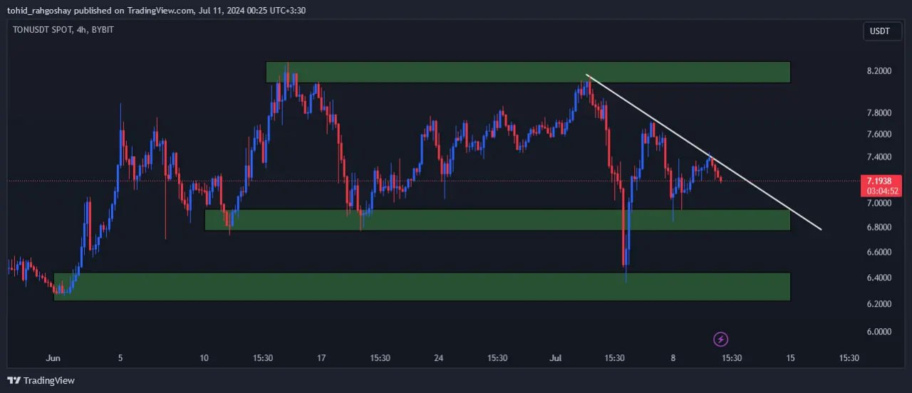 شرایط و روند قیمت تون کوین نشان از این دارد که میتوانیم برای روز جاری یک روند نزولی را برای آن متصور باشیم. البته برخورد قیمت آن به ناحیه حمایتی بالا دوباره میتواند تون کوین را به سمت بالا بکشاند. تون کوین در بلند مدت روند صعودی دارد.