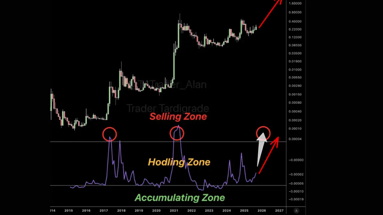 تحلیلگر برجسته، «تریدر تاردیگرید»، با بررسی نمودار ماهانهٔ RSI دوج کوین، یک الگوی سه مرحلهای تکرارشونده را در چرخههای بازار آن شناسایی کرده است.