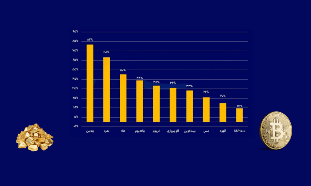 در کنار فلزات گرانبها، ارزهای دیجیتال و برخی کالاهای کشاورزی نیز عملکردی درخشان از خود به جای گذاشتند و بازدهی بسیار بالاتری از شاخص‌های بازار سهام مانند S&P 500 (با رشد ۱۴ درصدی) به ثبت رساندند.
