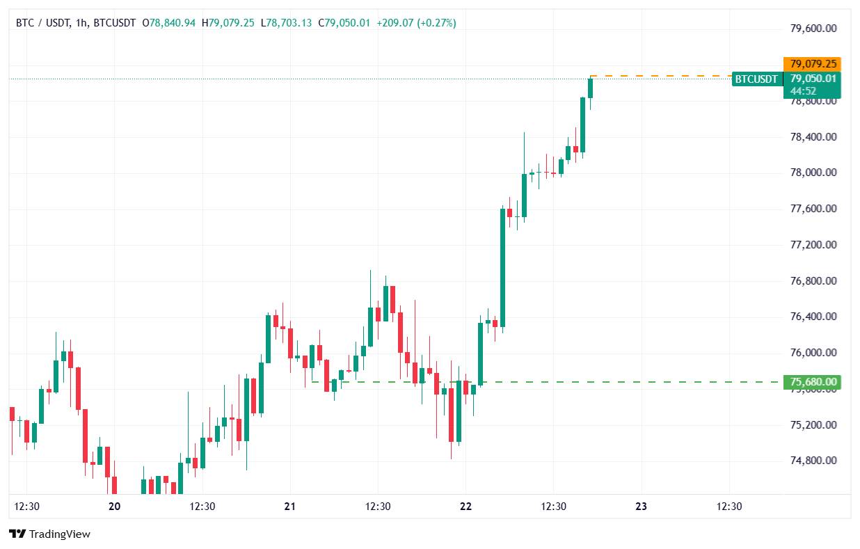 بازار ارز دیجیتال روز چهارشنبه جان تازهای گرفت. بیتکوین تا ۷۹ هزار دلار و اتریوم تا ۲۴۰۰ دلار بالا آمد. ارزش کل بازار هم به بالاترین سطح خود در ۱۱ هفته اخیر رسید.