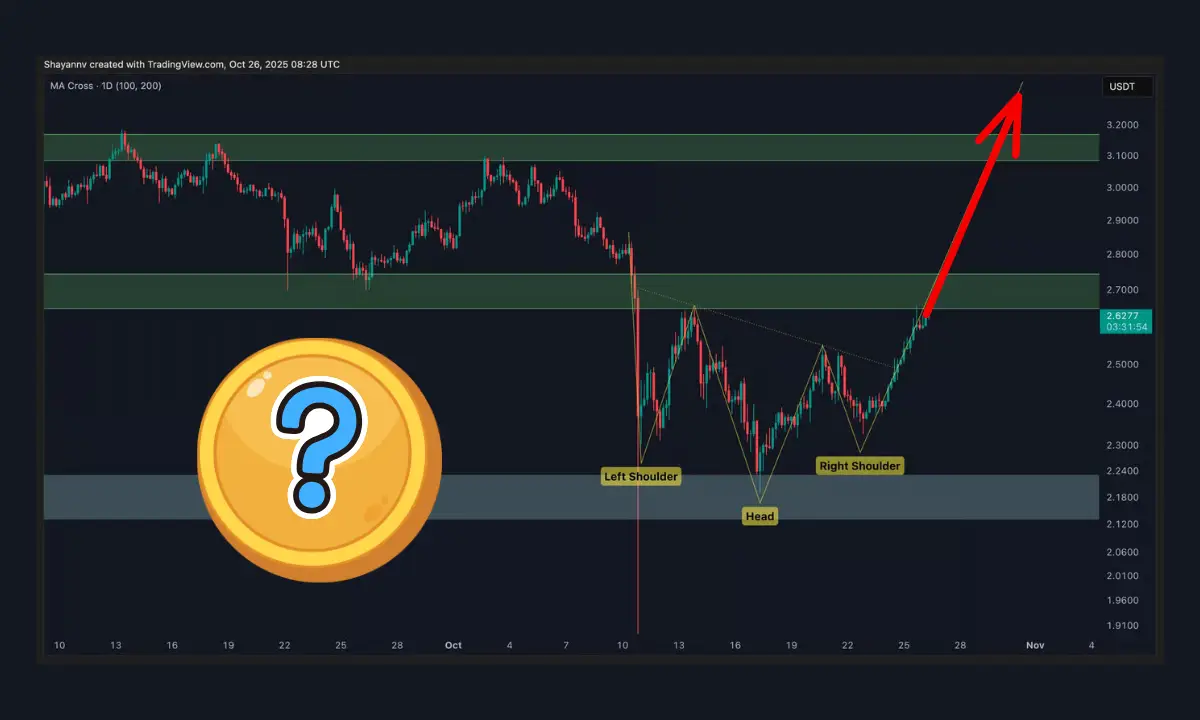 - وضعیت فعلی: قیمت پس از شکستن «خط گردن» الگو، به سمت مقاومت ۲.۶ دلاری حرکت کرده است.