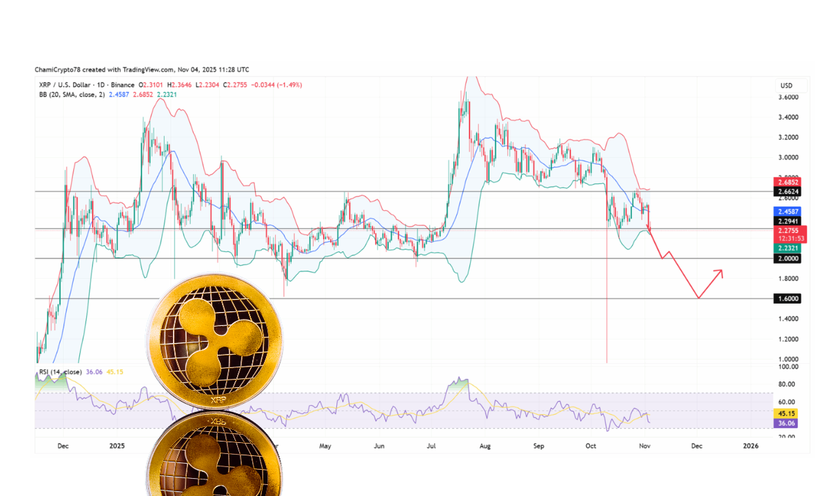قیمت ریپل (XRP) با ورود به یک ناحیهٔ تکنیکال بحرانی، تحت فشار شدید فروش قرار گرفته است. در حالی که قیمت در ۲۴ ساعت گذشته ۵.۳۲٪ افت کرده و به ۲.۲۷ دلار رسیده، یک الگوی کلاسیک نزولی در نمودار در حال شکلگیری است. نزدیک شدن به الگوی «تقاطع مرگ» (Death Cross)، همزمان با فروش تهاجمی نهنگها، نگرانیها را در مورد یک اصلاح عمیقتر افزایش داده است.