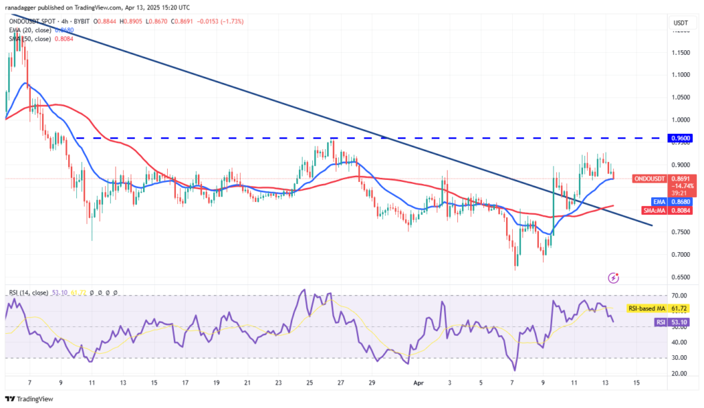 اوندو با عبور از خط روند نزولی به ۰.۹۶ دلار نزدیک شده است. حفظ قیمت بالای ۰.۸۳ دلار میتواند راه را برای صعود تا ۱.۲۰ دلار باز کند؛ در غیر این صورت، احتمال افت تا ۰.۷۹ و سپس ۰.۶۸ دلار وجود دارد.