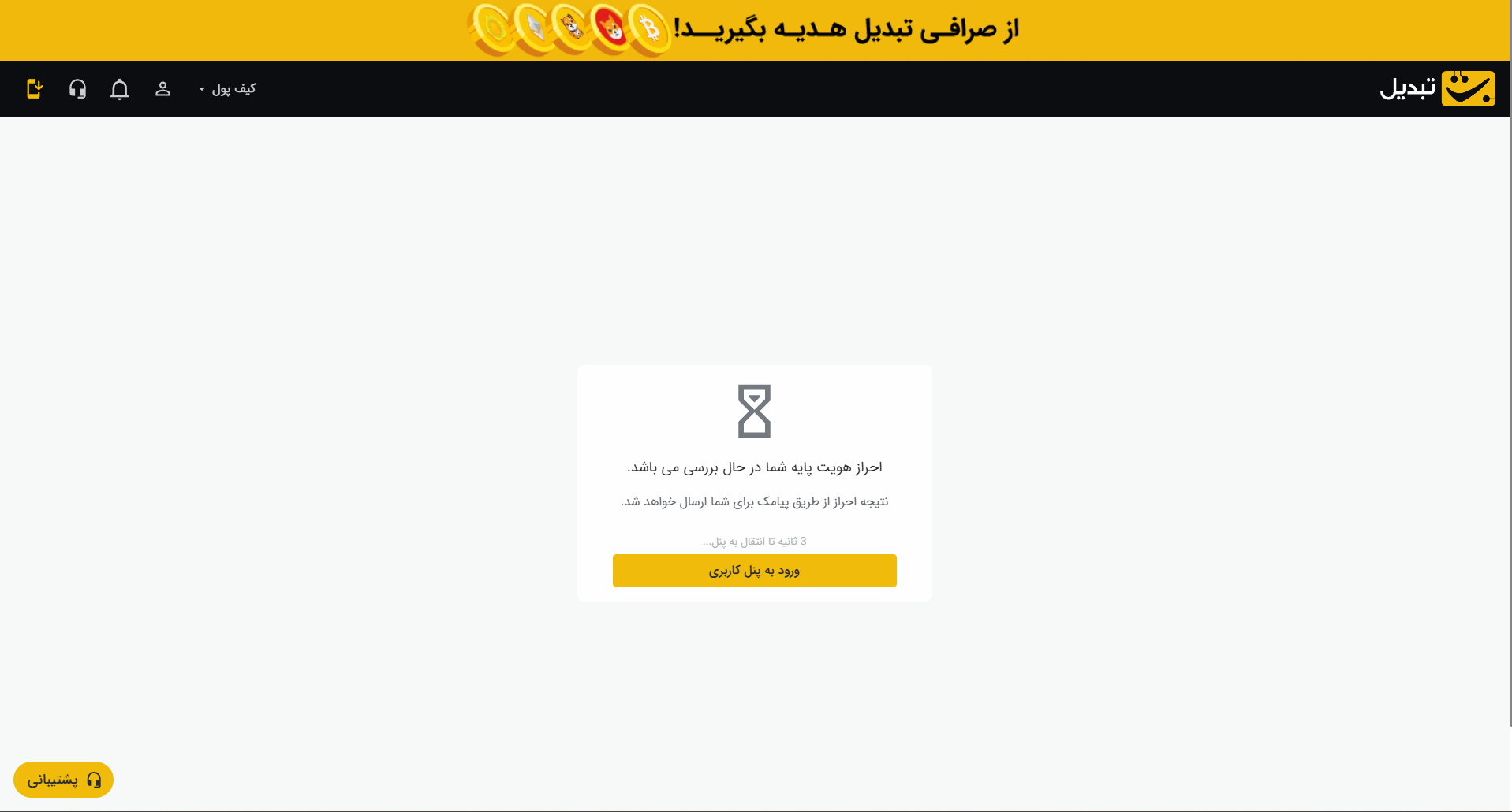 پس از تایید حساب کاربری، صرافی تبدیل با ارسال یک پیام به شما اطلاع می‌دهد. بدین ترتیب شما می‌توانید با واریز تومان، معاملات ارز دیجیتال خود را آغاز کنید.