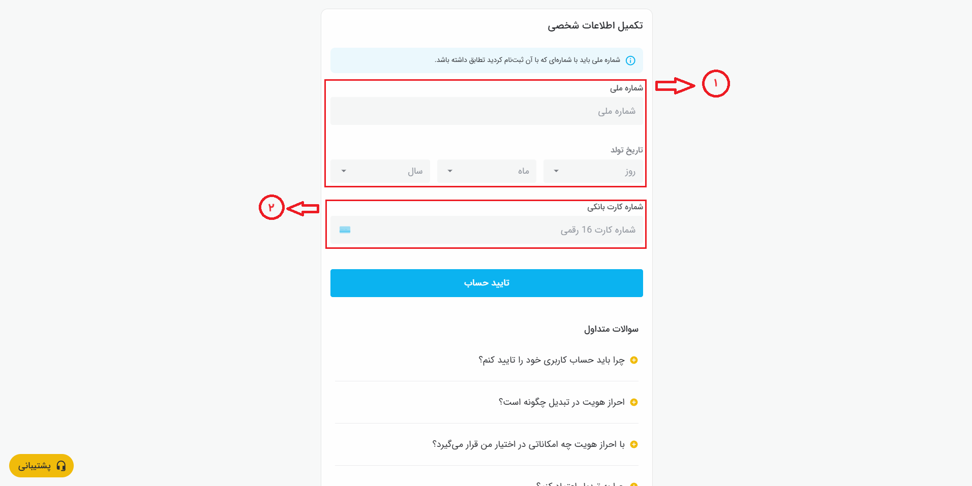 مراحل تایید حساب