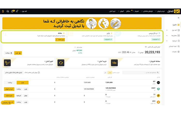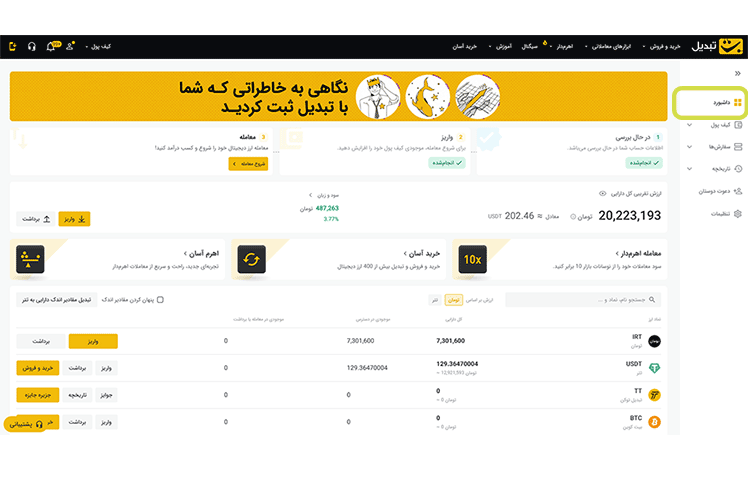 داشبورد اختصاصی کلیک کنید تا به داشبورد اختصاصی خود در صرافی تبدیل هدایت شوید.