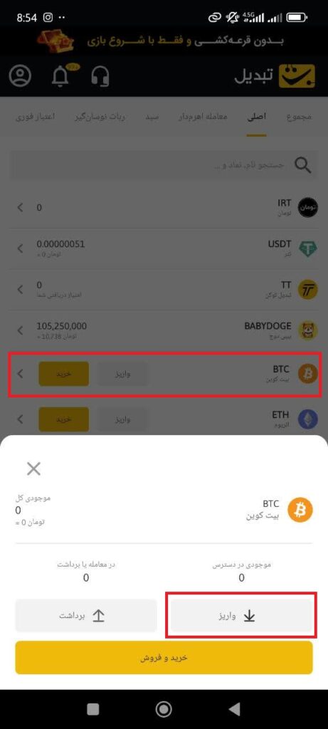 برای واریز ارز دیجیتال به حساب کاربری خود در صرافی تبدیل، مراحل زیر را دنبال کنید: