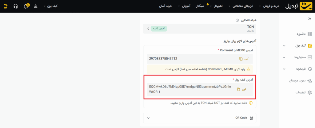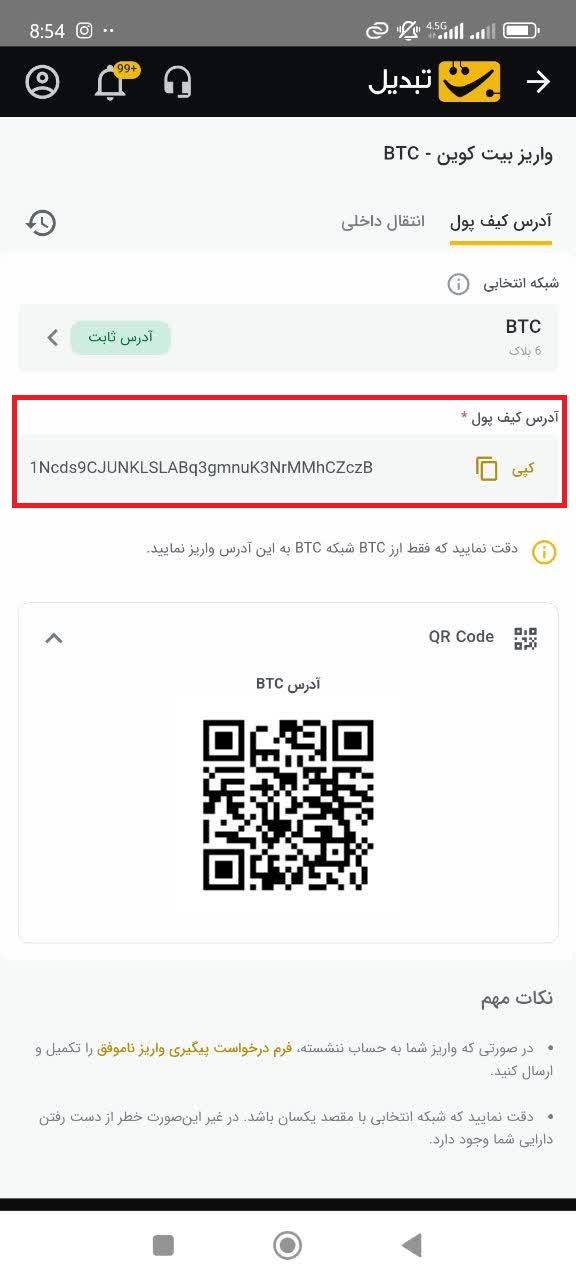 ۴. آدرس کیف پول اختصاصی خود در صرافی تبدیل را کپی کنید.