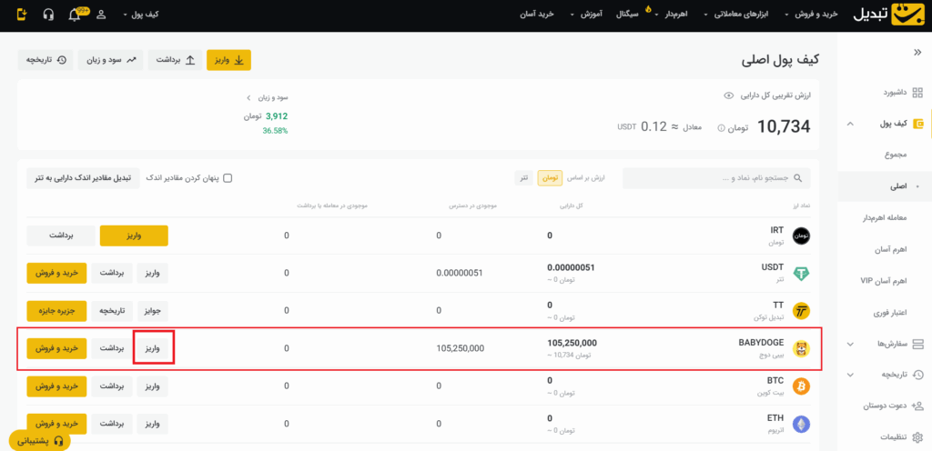 برای واریز ارز دیجیتال به حساب کاربری خود در صرافی تبدیل، مراحل زیر را دنبال کنید: