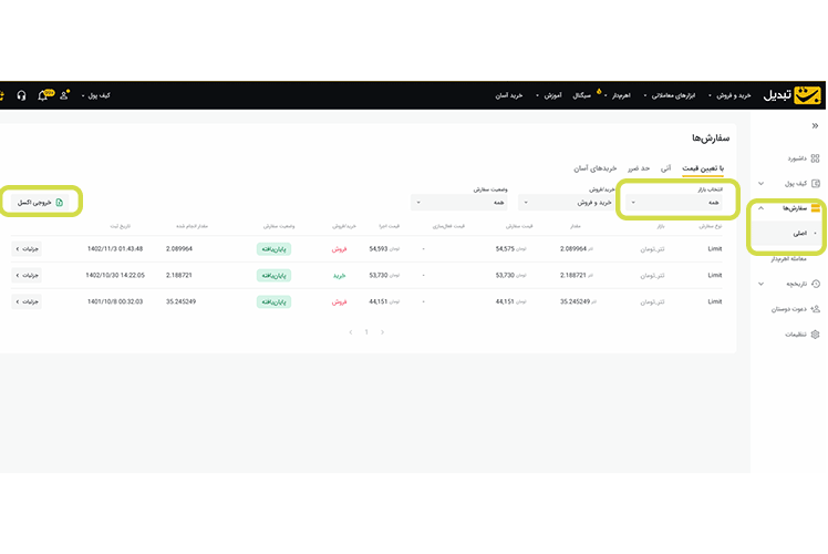 راهنمای بخش سفارش‌ها در صرافی تبدیل