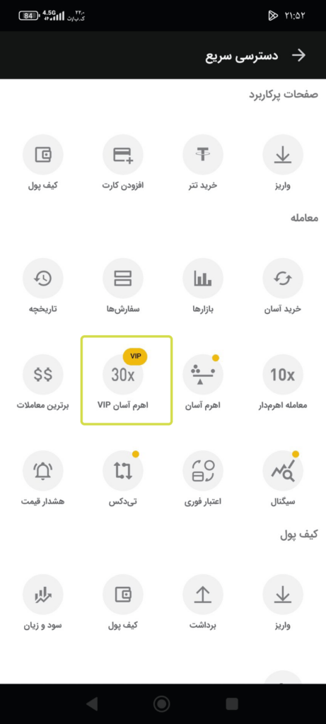 ۱. در حساب کاربری خود در اپلیکیشن صرافی تبدیل، ابتدا گزینه «بیشتر» را بزنید.