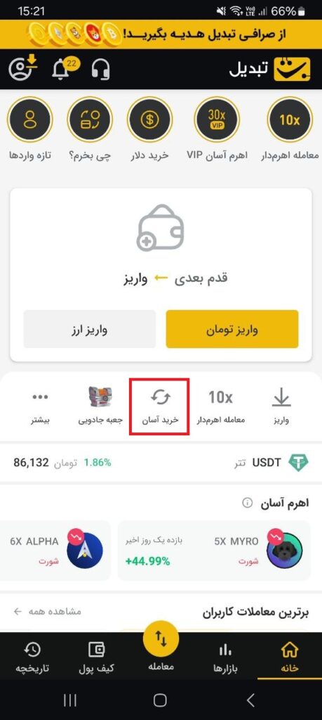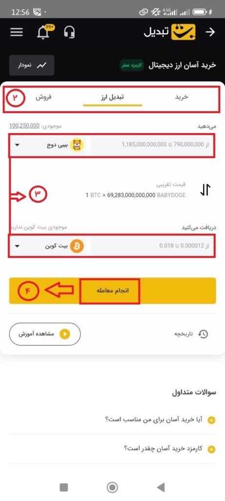 در این بخش، امکان تبدیل ارزهای دیجیتال به یکدیگر نیز فراهم شده تا سرعت و سهولت انجام تراکنش، افزایش پیدا کند. همچنین معاملات در این بخش شامل هیچ کارمزدی نمیشود.