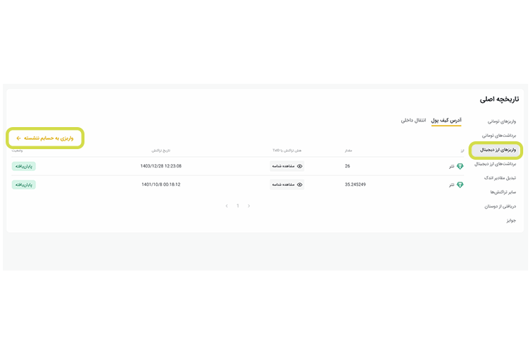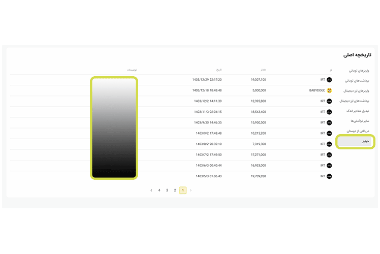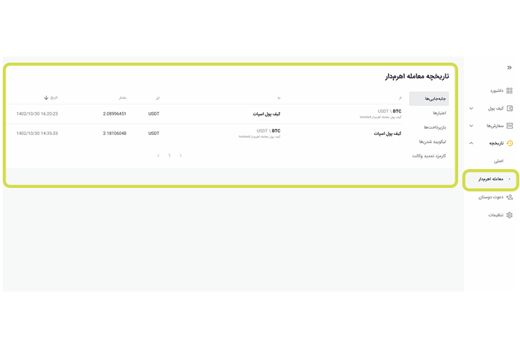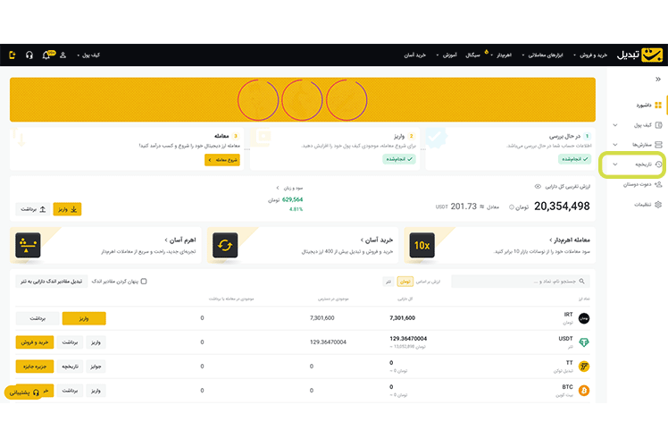 راهنمای بخش تاریخچه در صرافی تبدیل