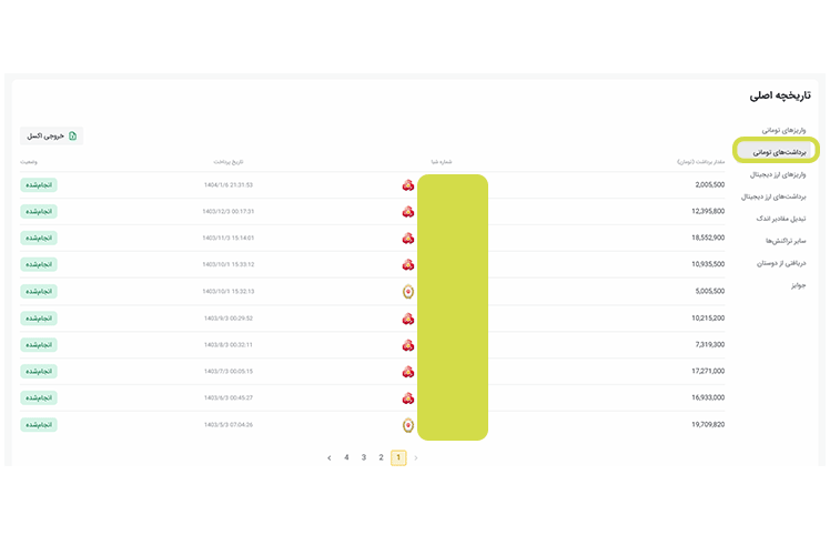 • جزئیات مربوط به هر تراکنش به تفکیک در این بخش قابل بررسی هستند.