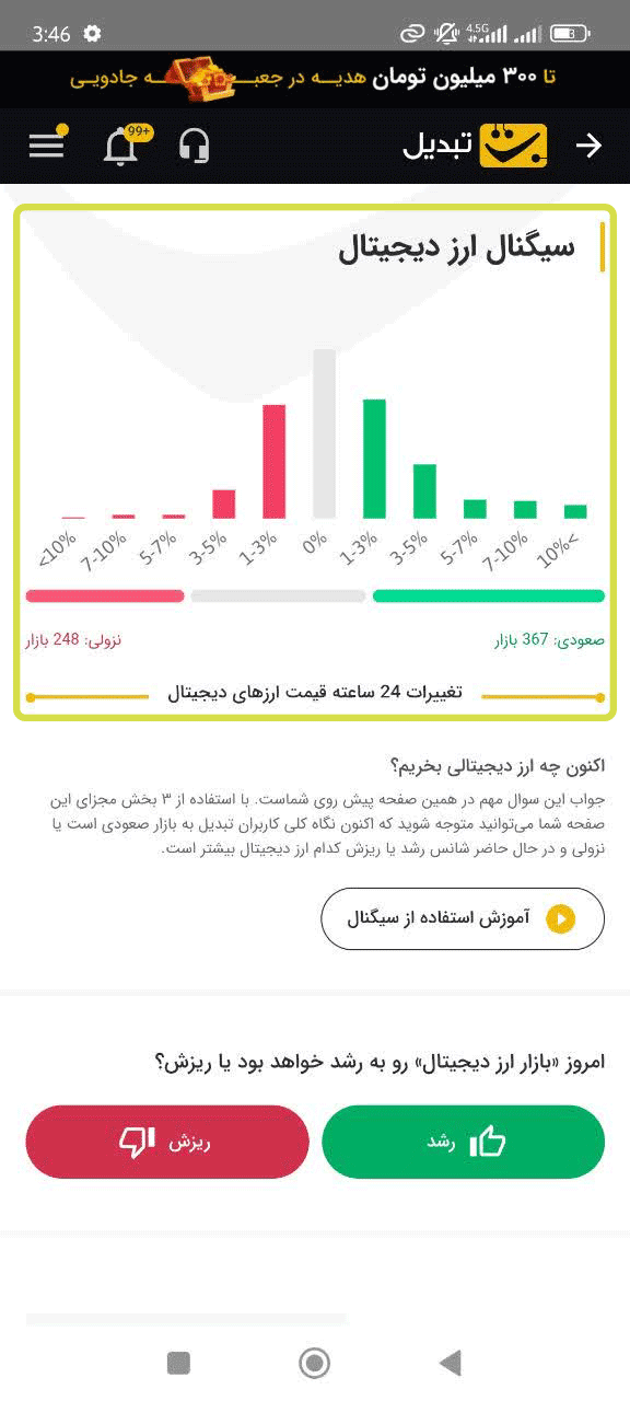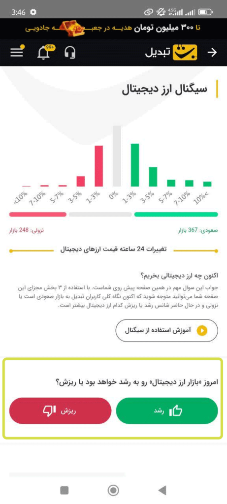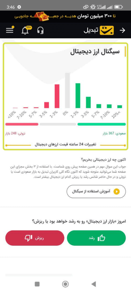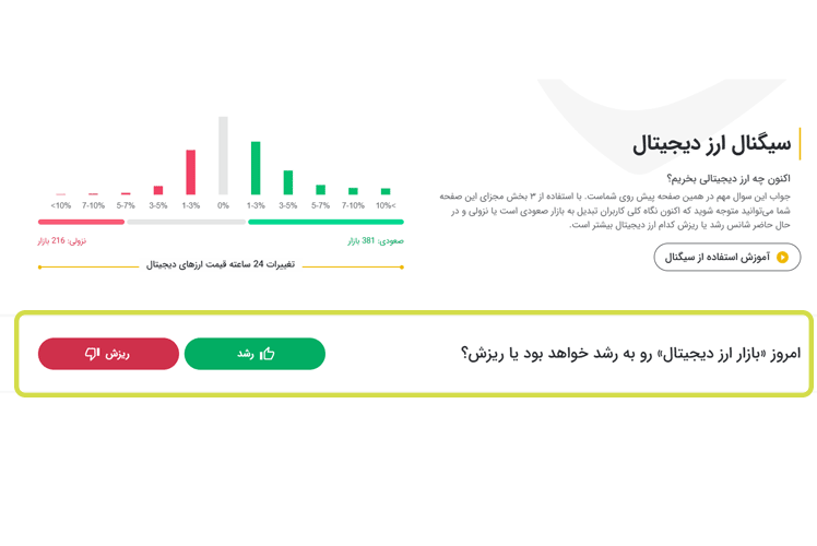 ۴. می‌توانید با پاسخ به نظرسنجی، نظر بقیه کاربران تبدیل درباره روند بازار را مشاهده کنید.