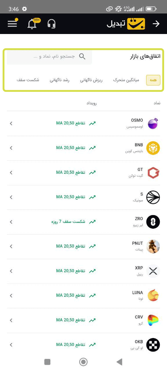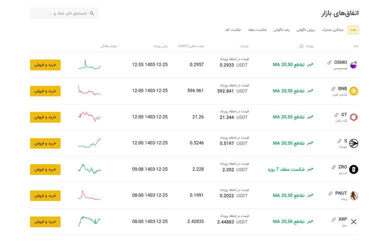 ۵. در بخش اتفاق‌های بازار، نوسانات هر ارز به صورت اختصاصی بررسی می‌شود.