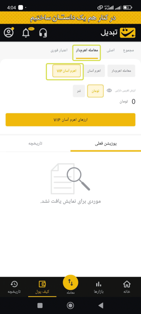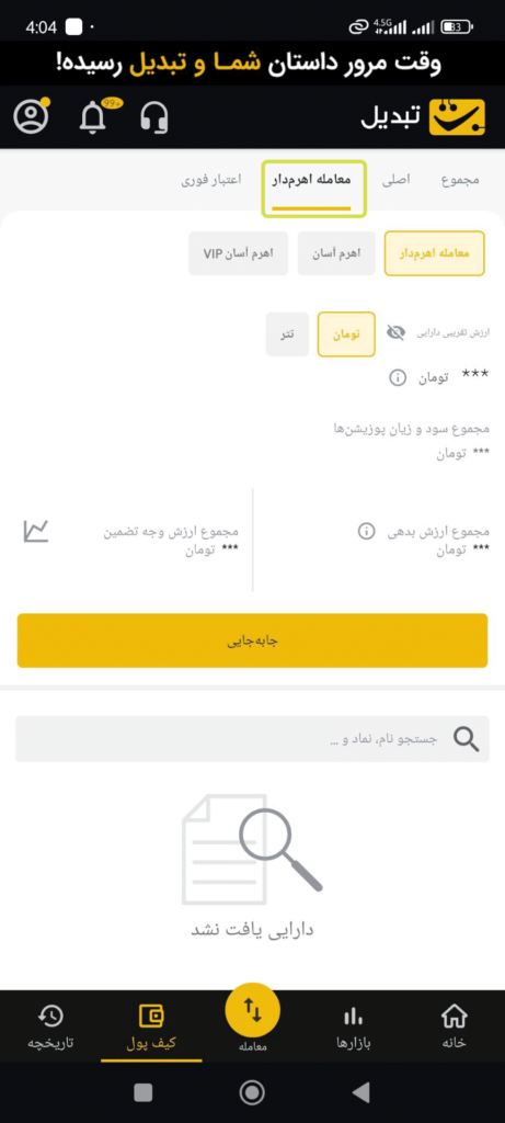 در این بخش، میتوانید به طور شفاف و لحظهای، میزان دارایی اختصاصیافته به معاملات اهرم کلاسیک و وضعیت معاملات باز خود را مشاهده کنید.