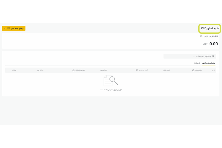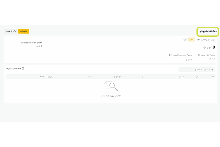 در این بخش، میتوانید به طور شفاف و لحظهای، میزان دارایی اختصاصیافته به معاملات اهرم کلاسیک و وضعیت معاملات باز خود را مشاهده کنید.