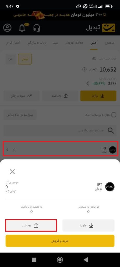 برای برداشت تومان از کیف پول صرافی تبدیل به کارت بانکی خود، مراحلی که در ادامه گفته میشود را دنبال کنید.