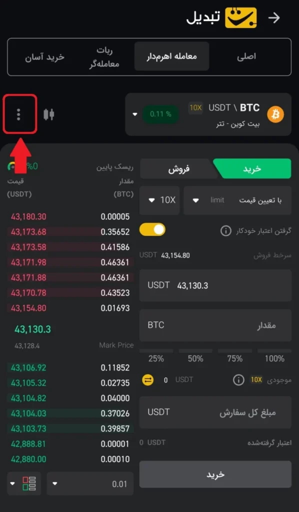۷. ضریب اهرم موردنظر خود را مشخص کنید.