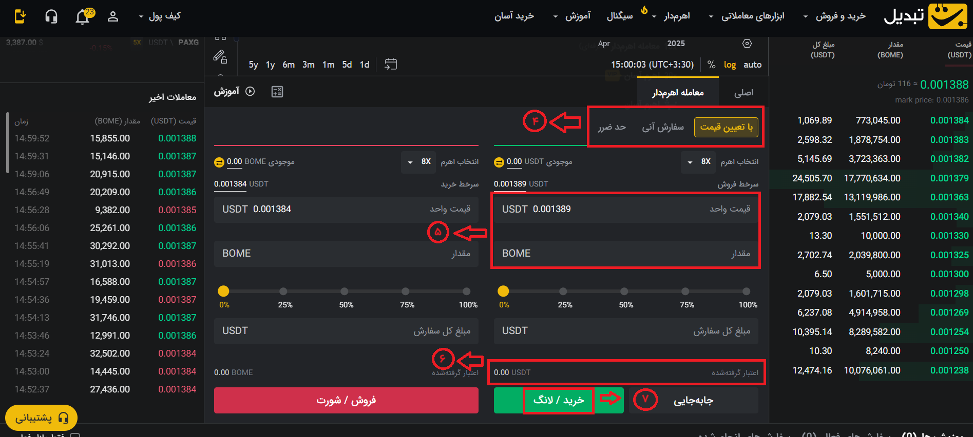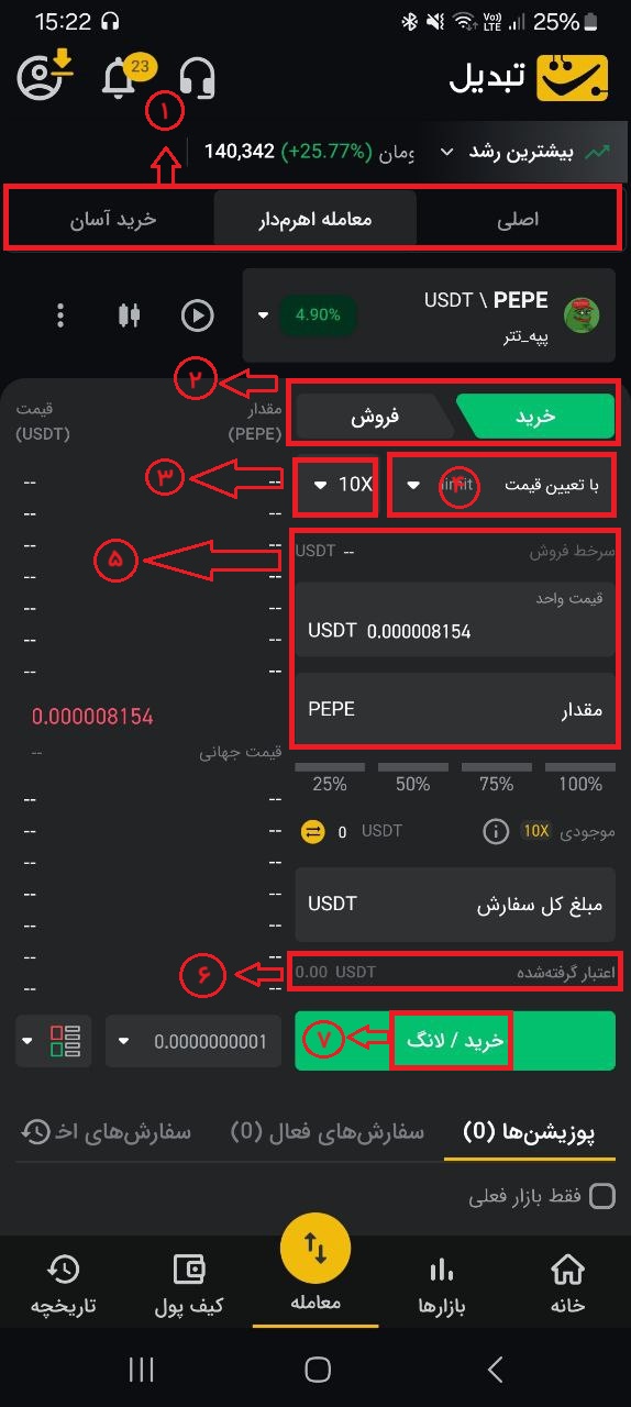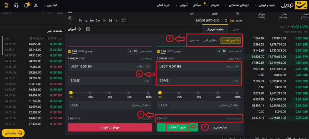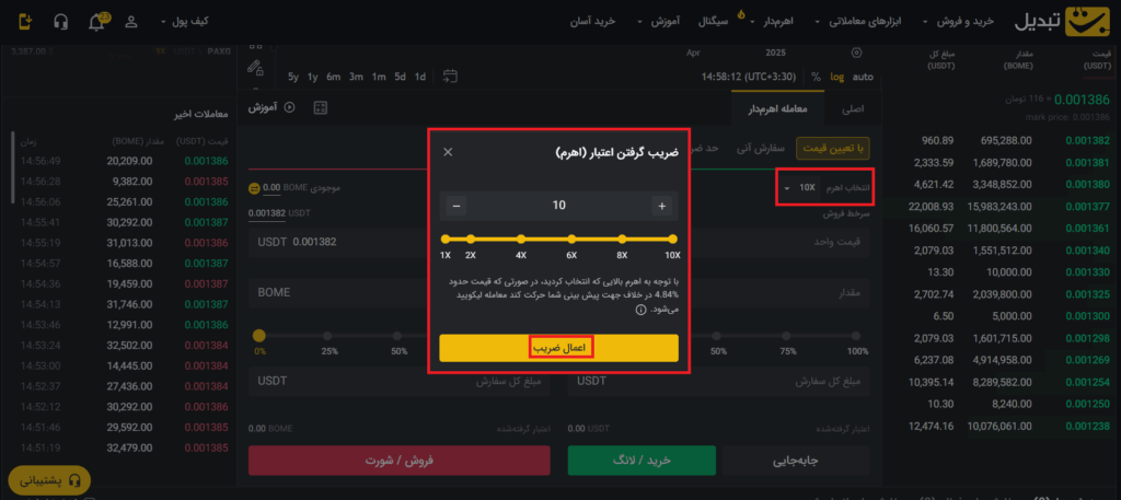۳. تعیین ضریب اهرم: میزان اهرم را تنظیم کنید.