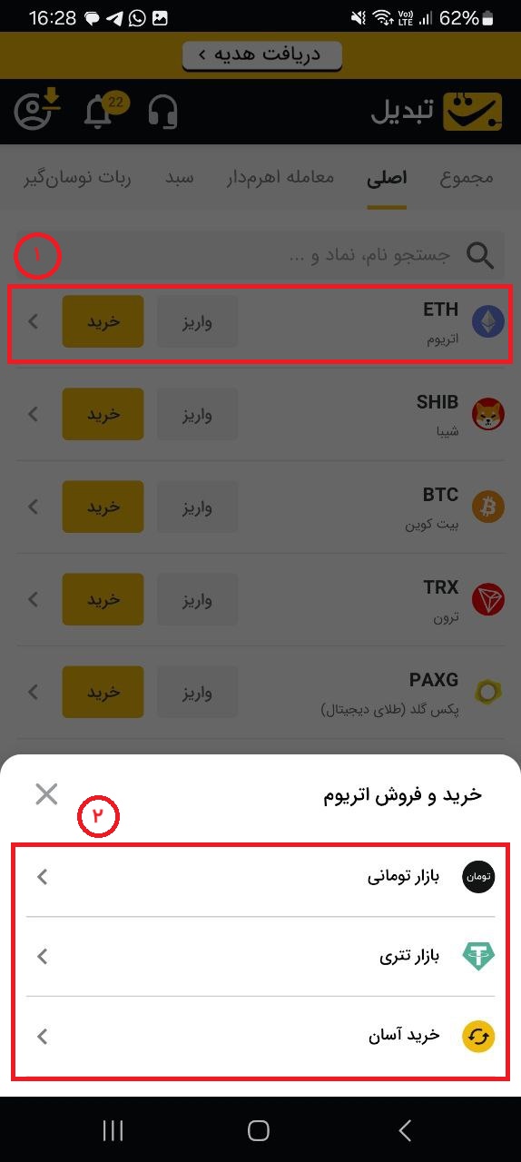 ۱. ارز دیجیتالی که می‌خواهید معامله کنید را انتخاب کنید.