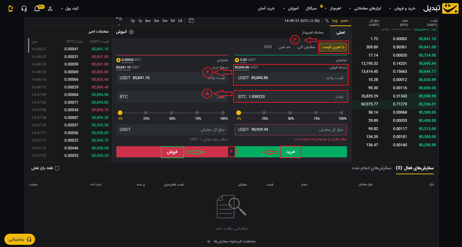 ۶. درنهایت، روی دکمه خرید یا فروش کلیک کنید.