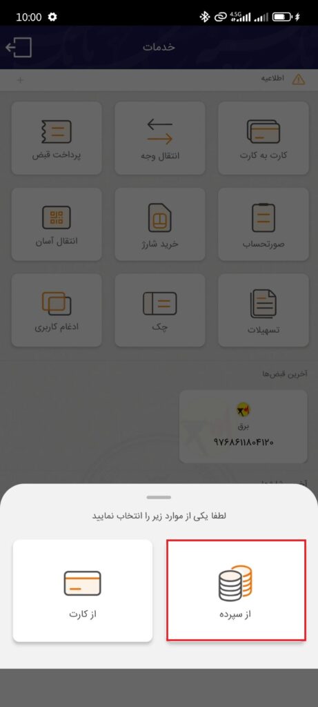 ۳. روی گزینه «از سپرده» کلیک کنید.
