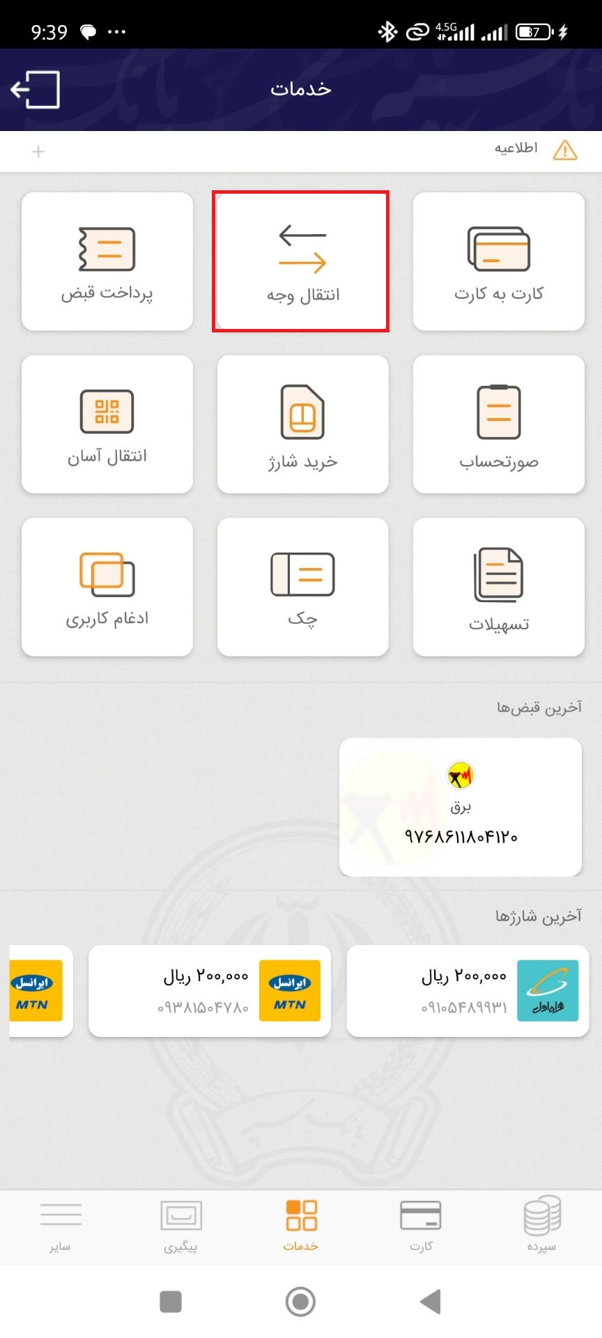 راهنمای واریز تومان از همراه بانک سپه