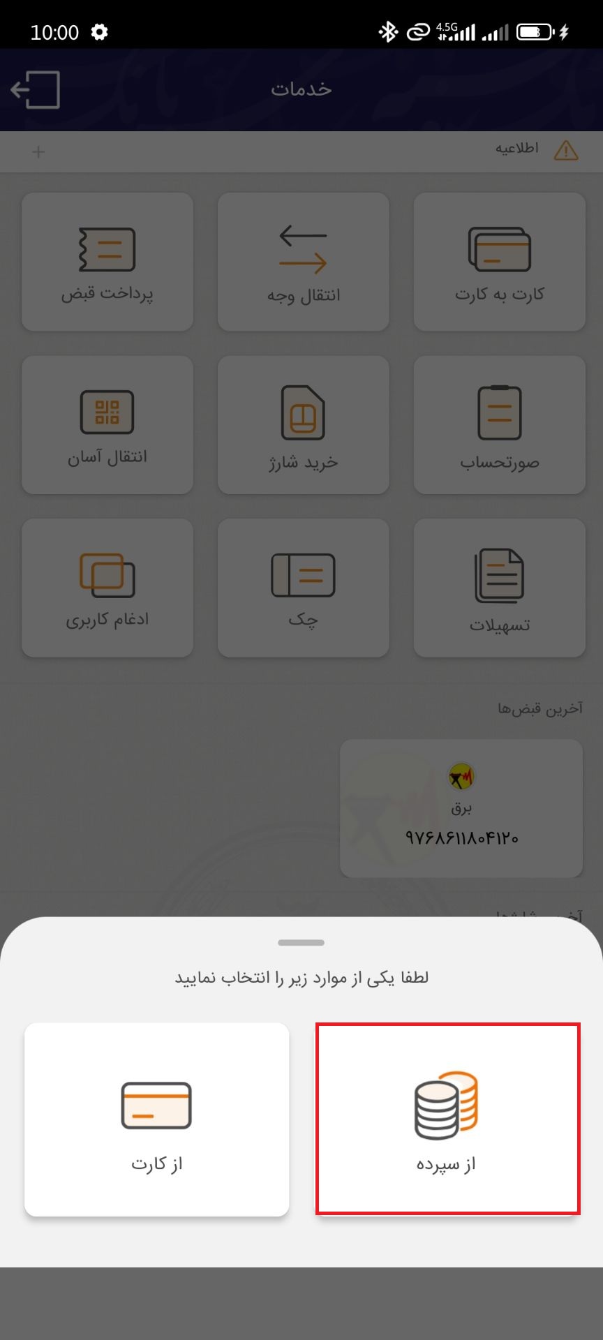 ۳. روی گزینه «از سپرده» کلیک کنید.