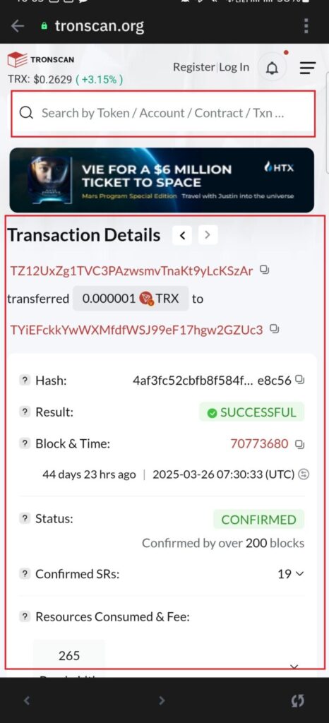 • در این صفحه، هش تراکنش (TXID) قابل مشاهده خواهد بود